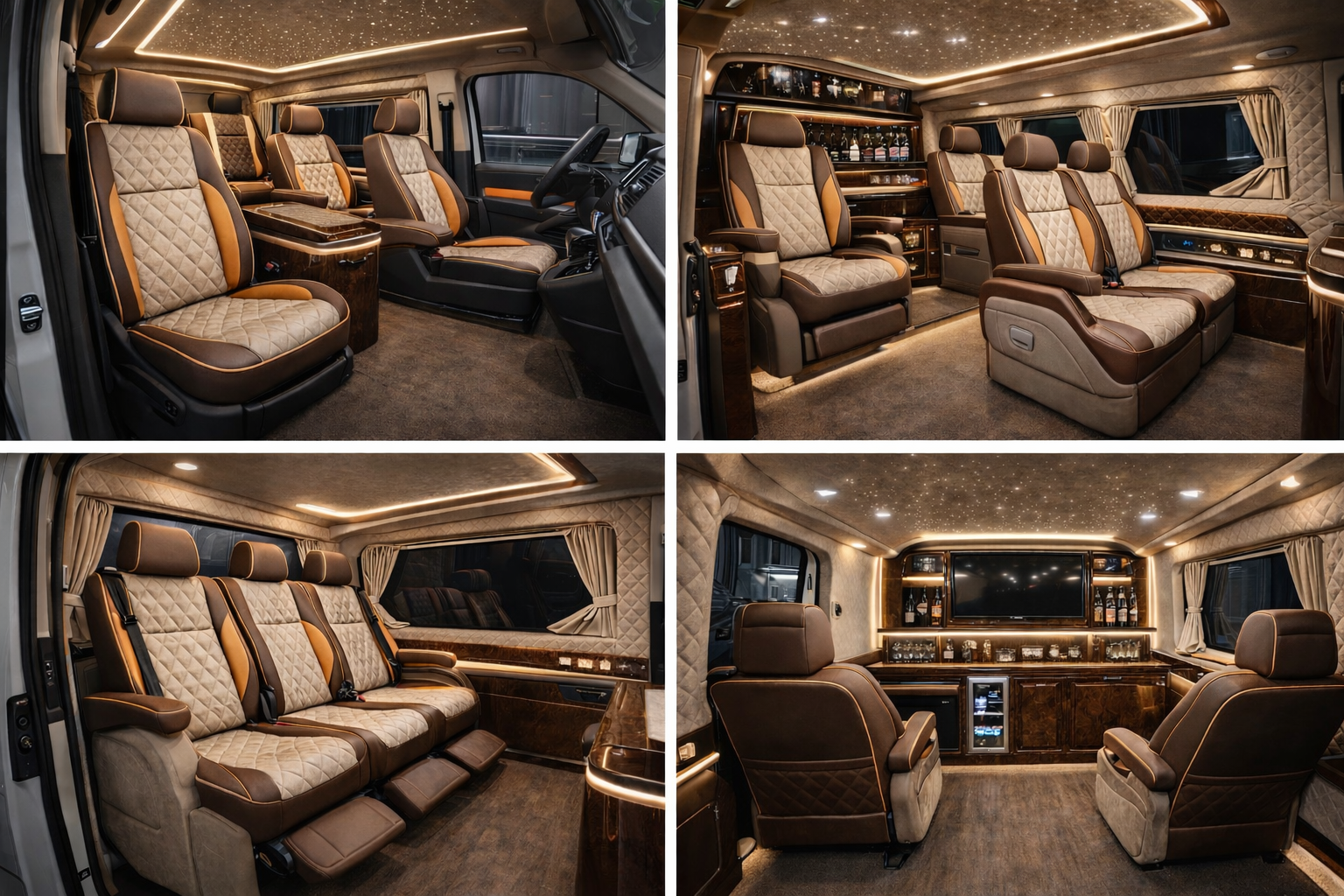 Переделка салона микроавтобуса — изменение конфигурации и отделки под задачи владельца. Выполняется установка сидений, перетяжка элементов, обшивка стен и потолка для повышения комфорта и функциональности.