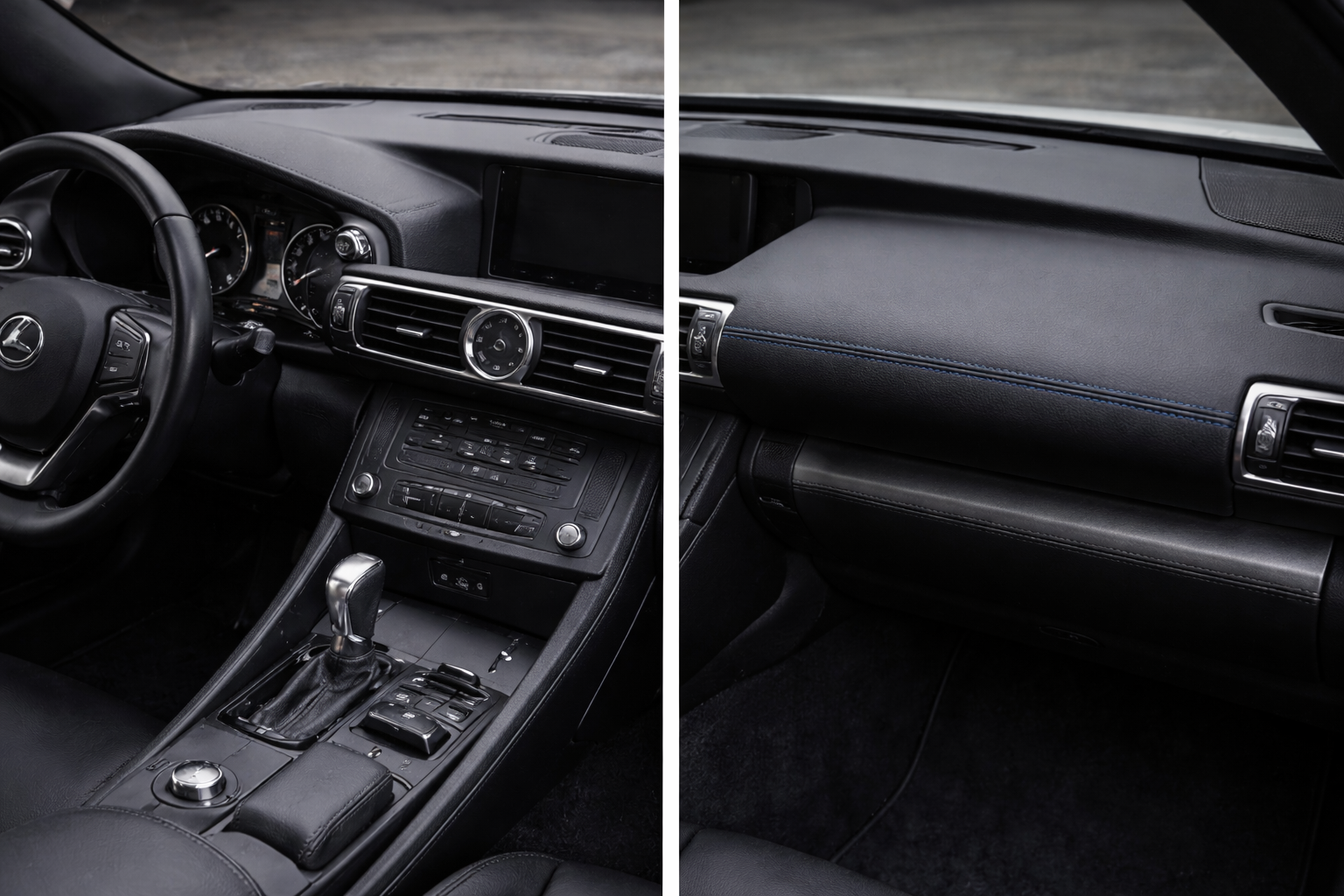 Обновление передней панели с использованием автомобильной кожи, устойчивой к нагреву и износу. Улучшает внешний вид салона и придаёт интерьеру премиальный характер.